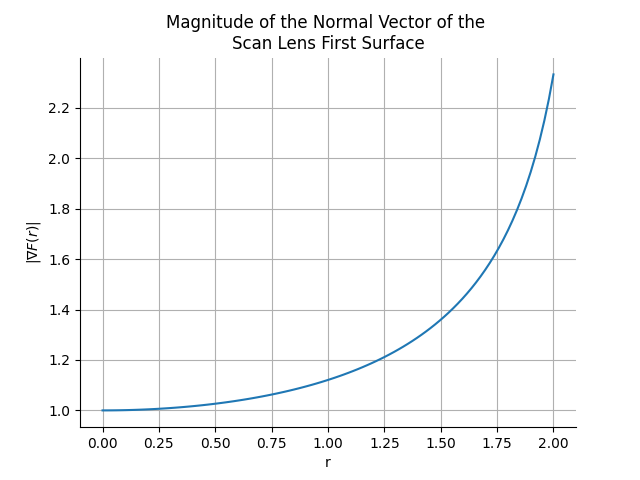 All of this aside, the magnitude of the normal vector doesn't really become that large in the scan lens example, so the cause of the Newton-Raphson failure is likely coming from near-grazing incidence rays where \(\cos \alpha \approx 0 \).