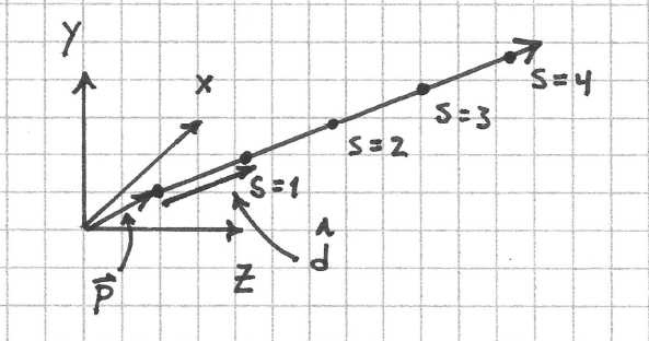 $$ \vec{r}(s) = \vec{p} + s \hat{d}. $$